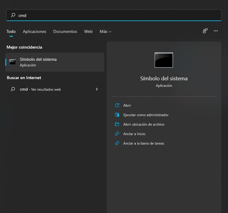 - Abrir el símbolo del sistema (lo pueden buscar en Inicio por símbolo del sistema o CMD) o presionando “Win+R” y a continuación escribir CMD en la ventana ejecutar.